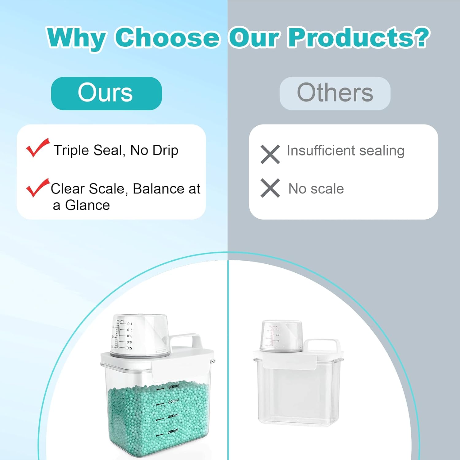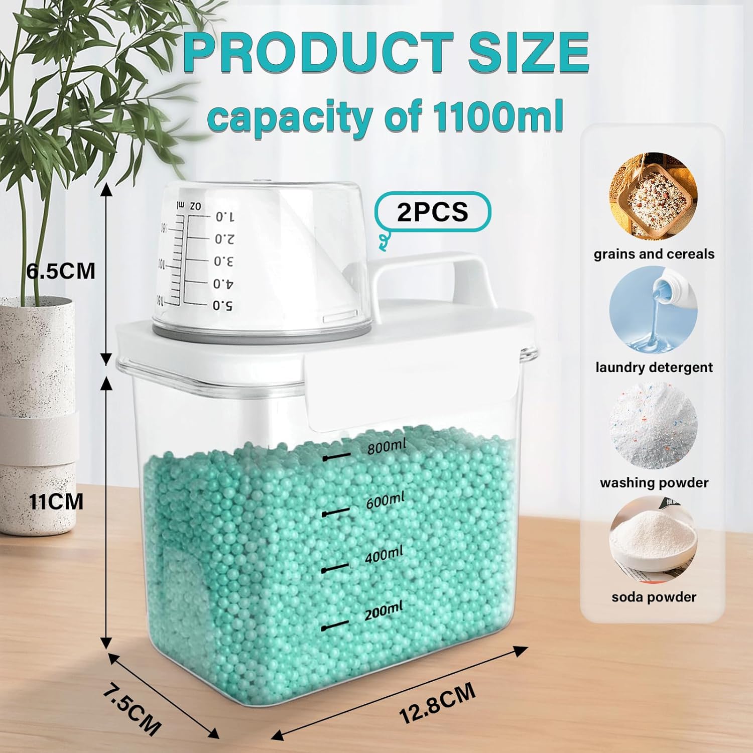 Diese Spender eignen sich nicht nur für Waschpulver, sondern auch perfekt für Weichspüler, Duftverstärker oder andere Haushaltsprodukte. Dank ihres kompakten Designs finden sie problemlos Platz im Schrank, im Regal oder auf der Fensterbank.