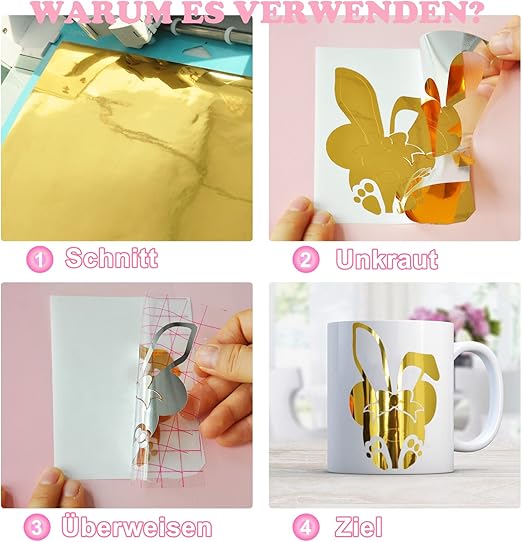 Verleihen Sie Ihren Kreationen mit dieser 30 x 30 cm großen, goldfarbenen Metallic-Vinylfolie einen luxuriösen Look. Ideal für Aufkleber, Etiketten,... Lesen Sie mehr