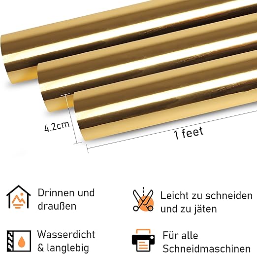 Goldmetallic-Vinylfolie 30,5 x 305 cm – Permanente Plotterfolienrolle – Weihnachten und DIY