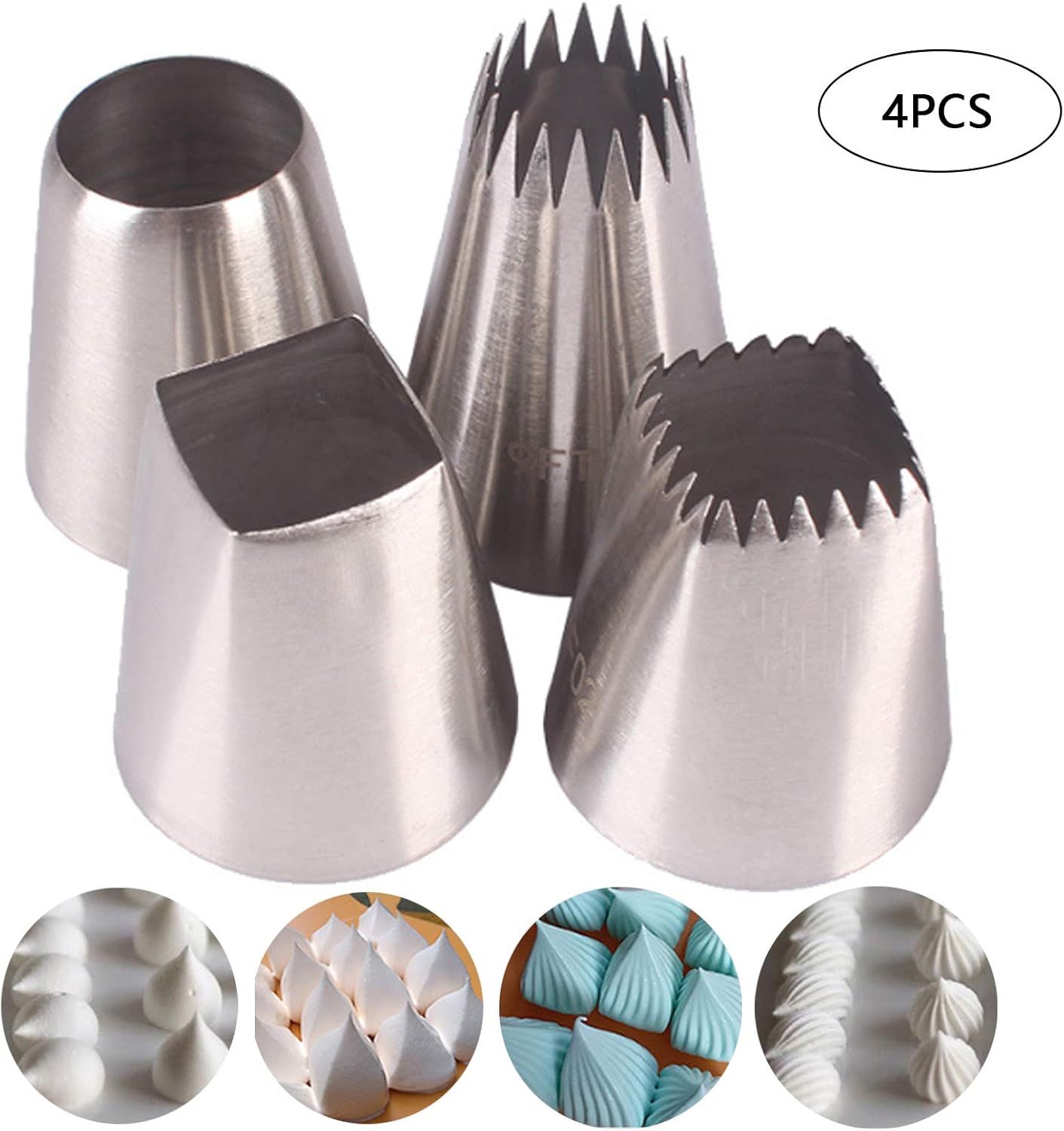 Set mit 4 großen Spritztüllen aus Edelstahl für Kuchen-, Cupcake- und Dessertdekoration