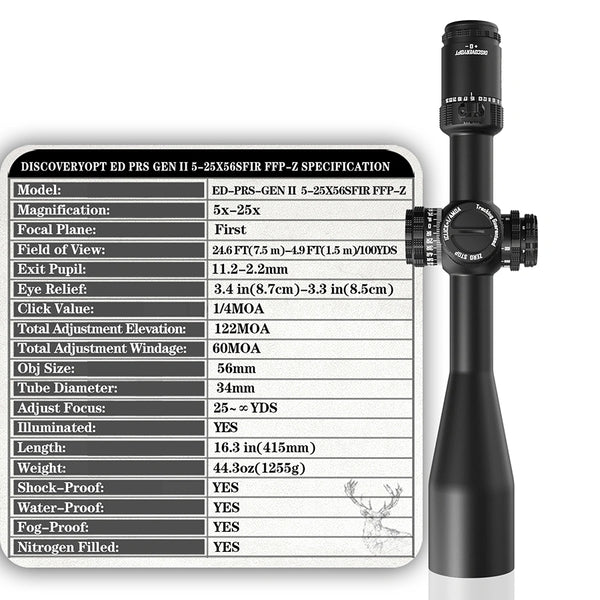 DISCOVERYOPT ED-PRS GENⅡ 5-25X56SFIR FFP-MRAD/MOA-ZERO STOP Diameter: 34MM Optiek Scopes