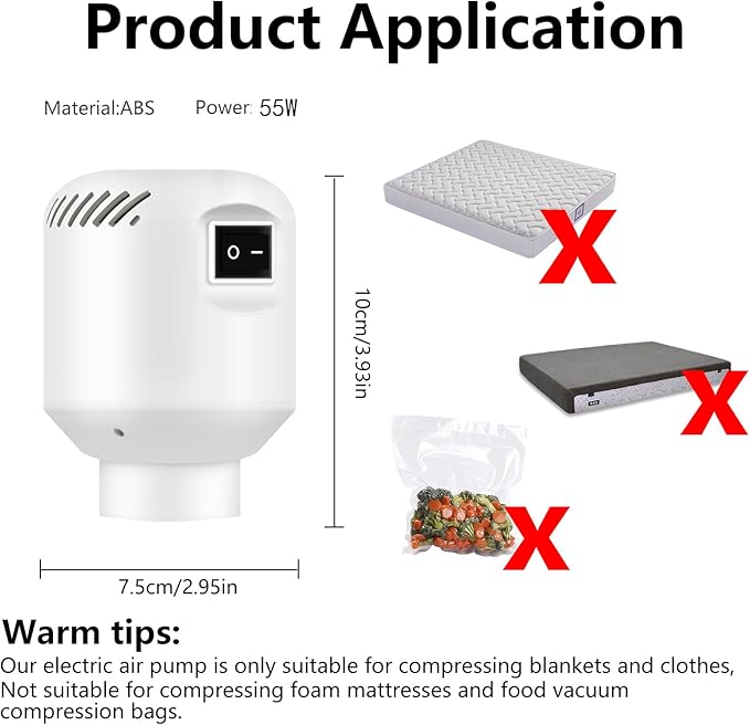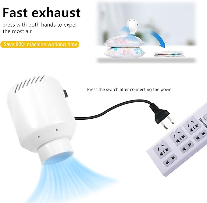 Maak het opruimen en opbergen een stuk eenvoudiger met deze elektrische vacuümpomp van 220V. Waar je normaal veel tijd en kracht kwijt bent met een handpomp, zuigt deze compacte elektrische pomp in enkele seconden de lucht uit je vacuümzakken. Perfect voor het besparen van ruimte in kledingkasten, koffers en opslagboxen.