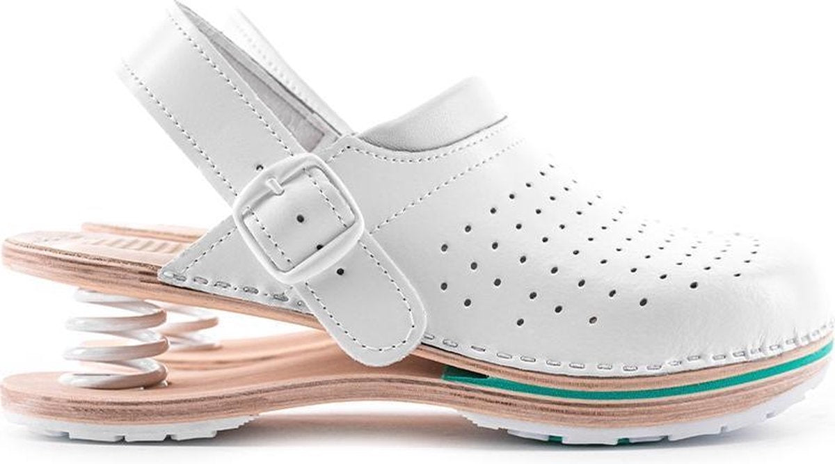 De basis van deze medische klomp bestaat uit twee gefineerde plaatjes, parallel geplaatst en middels warmte gevormd. Dat geeft een draagcomfort waar je elke dag van profiteert. Dit, in combinatie met de gelvulling in de hielen en de innovatieve geveerde zool, maakt het tot een topmodel onder de klompen.
