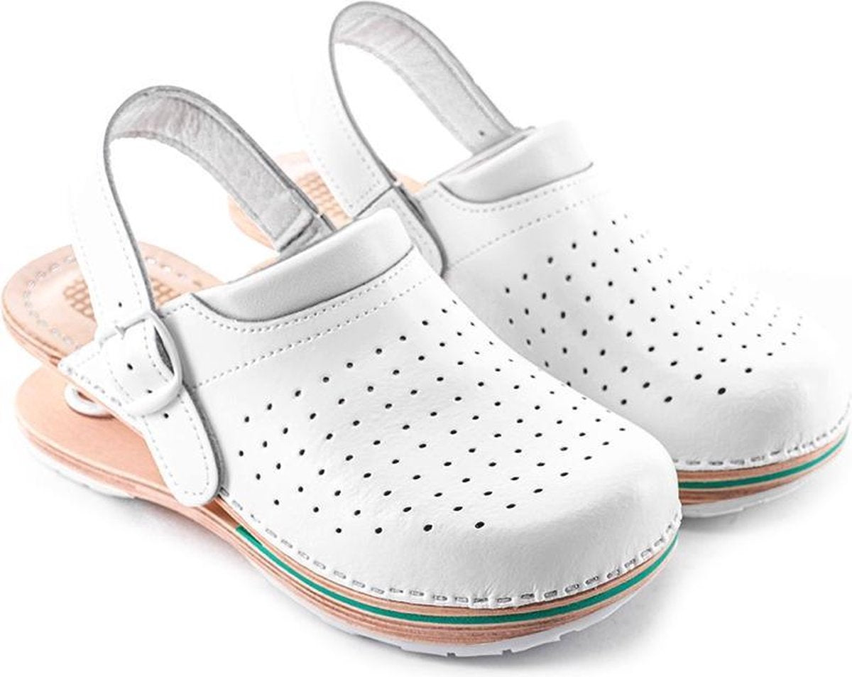 Verder zijn deze klompen gemaakt van 100% natuurlijk rundleder. Deze duurzame en comfortabele klomp heeft een schacht die bestendig aan de zool is bevestigd. Met ventilerende bovenzijde en een zachte, 100% lederen binnenzool met antislip. Dankzij de sterke anti-slipfunctie van de zool loop je gemakkelijk in natte en vochtige ruimtes.