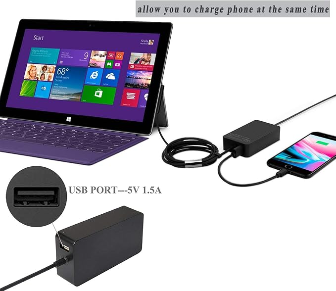 Oplader geschikt voor Surface Pro, Book en Laptop – 102 W - Snel - Met Extra USB Poort - 2 in 1