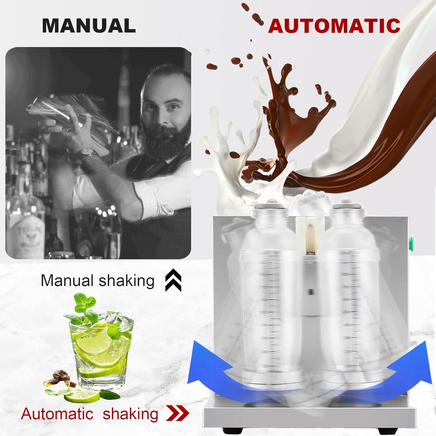 Professionele Shaker – Dubbele Beker - 120W Hoogtoerige Mixer met Timer
