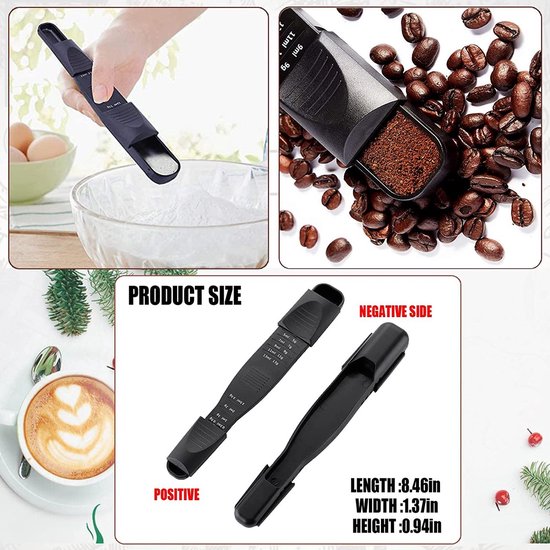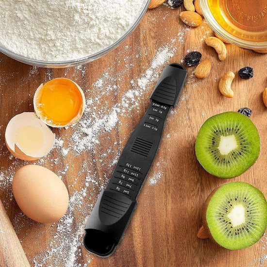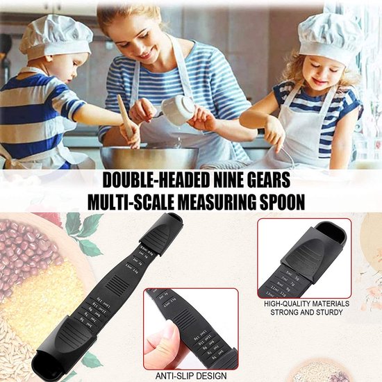 Set van 3 - Verstelbare Maatlepels voor Keuken - Precieze Weegschaal voor Gram en Milliliter - Vervangt Theelepel, Koffielepel, Kinderlepel en Bestek - Zwart
