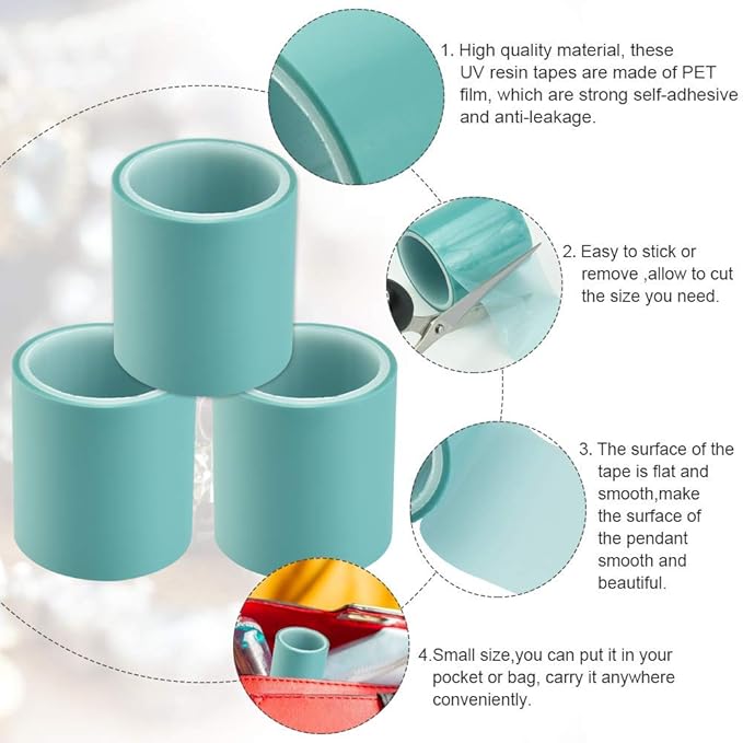 Met deze set van 3 rollen UV resin tape werk je eenvoudig en schoon aan al je epoxy- en knutselprojecten. Het tape is gemaakt van hoogwaardig PET-materiaal, sterk zelfklevend en bestand tegen lekkage. Ideaal om te gebruiken bij open frame resin kunstwerken, sieraden en andere creatieve DIY-projecten.