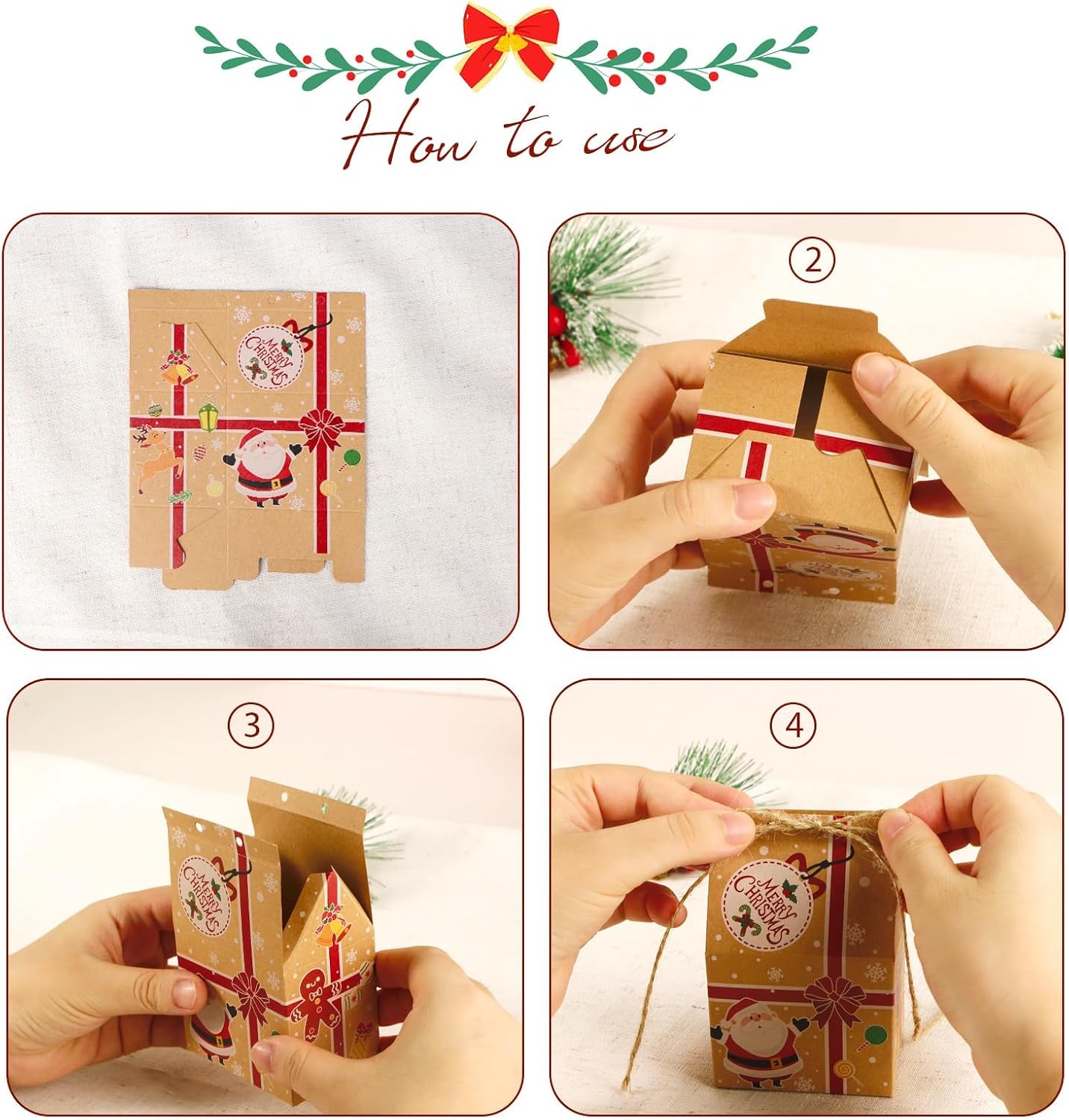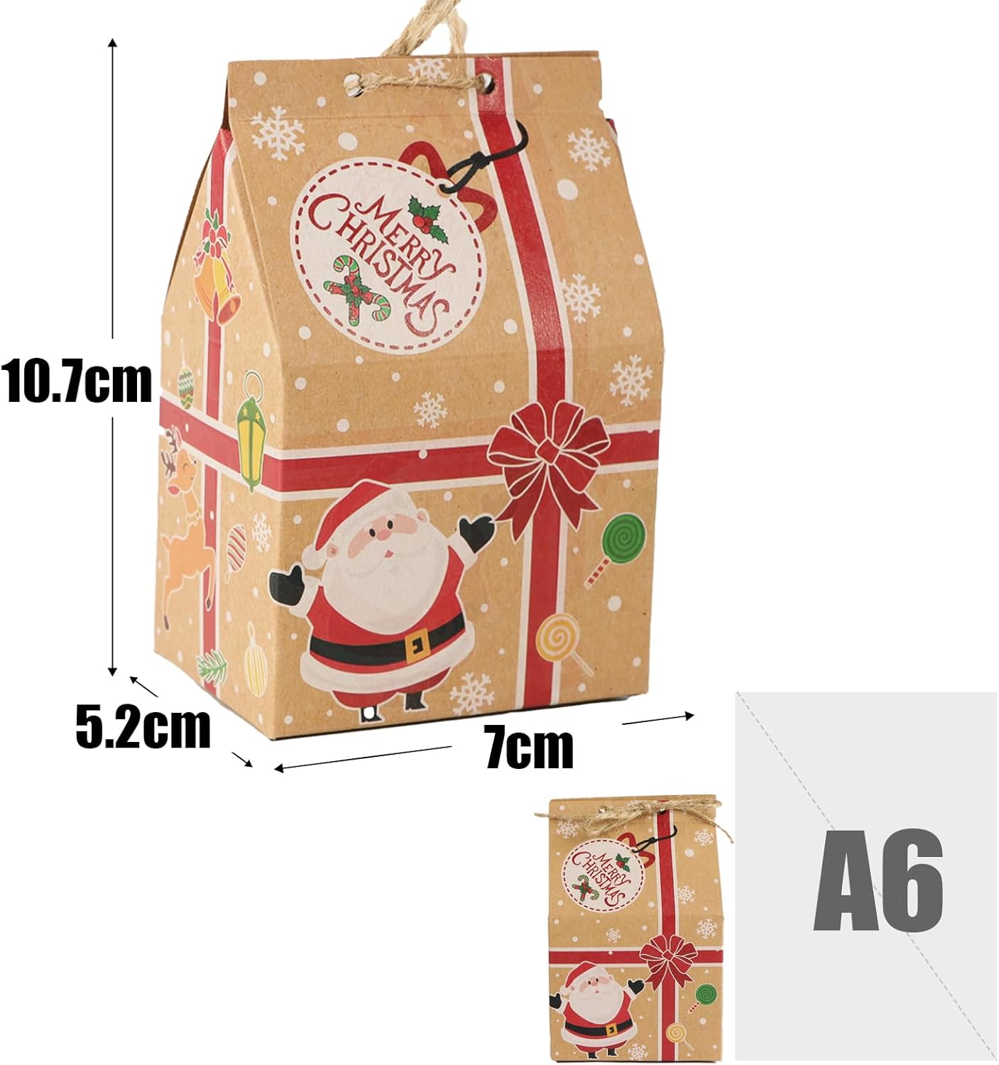 Set van 70 stevige kerstdoosjes in feestelijke designs, ideaal voor het verpakken van kleine cadeautjes, koekjes of snoep. Gemaakt van dik 260 g kraftpapier – dus geen slappe zakjes, maar echte mini-doosjes die blijven staan.