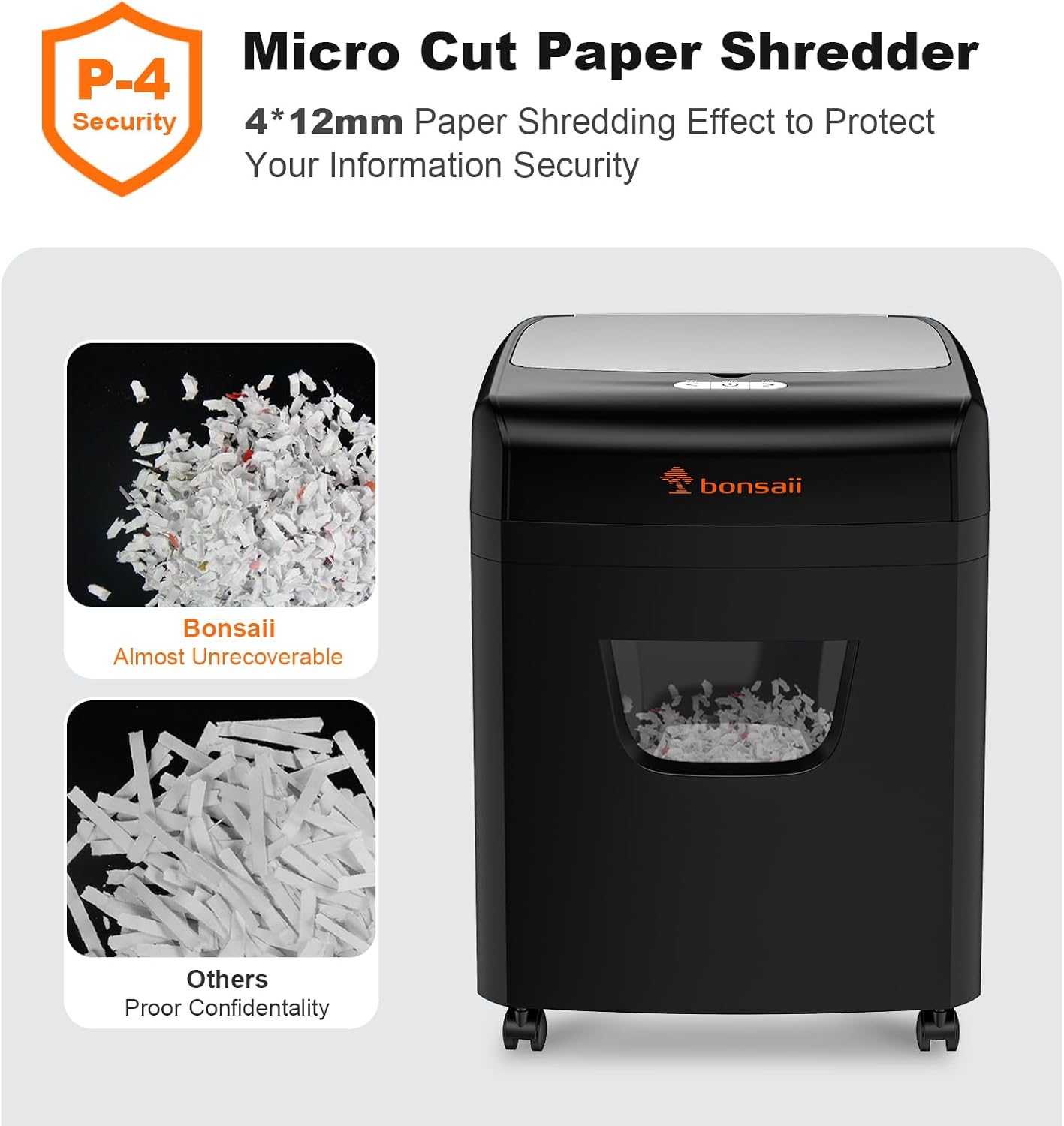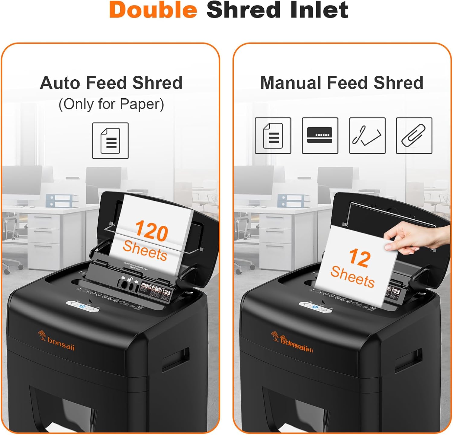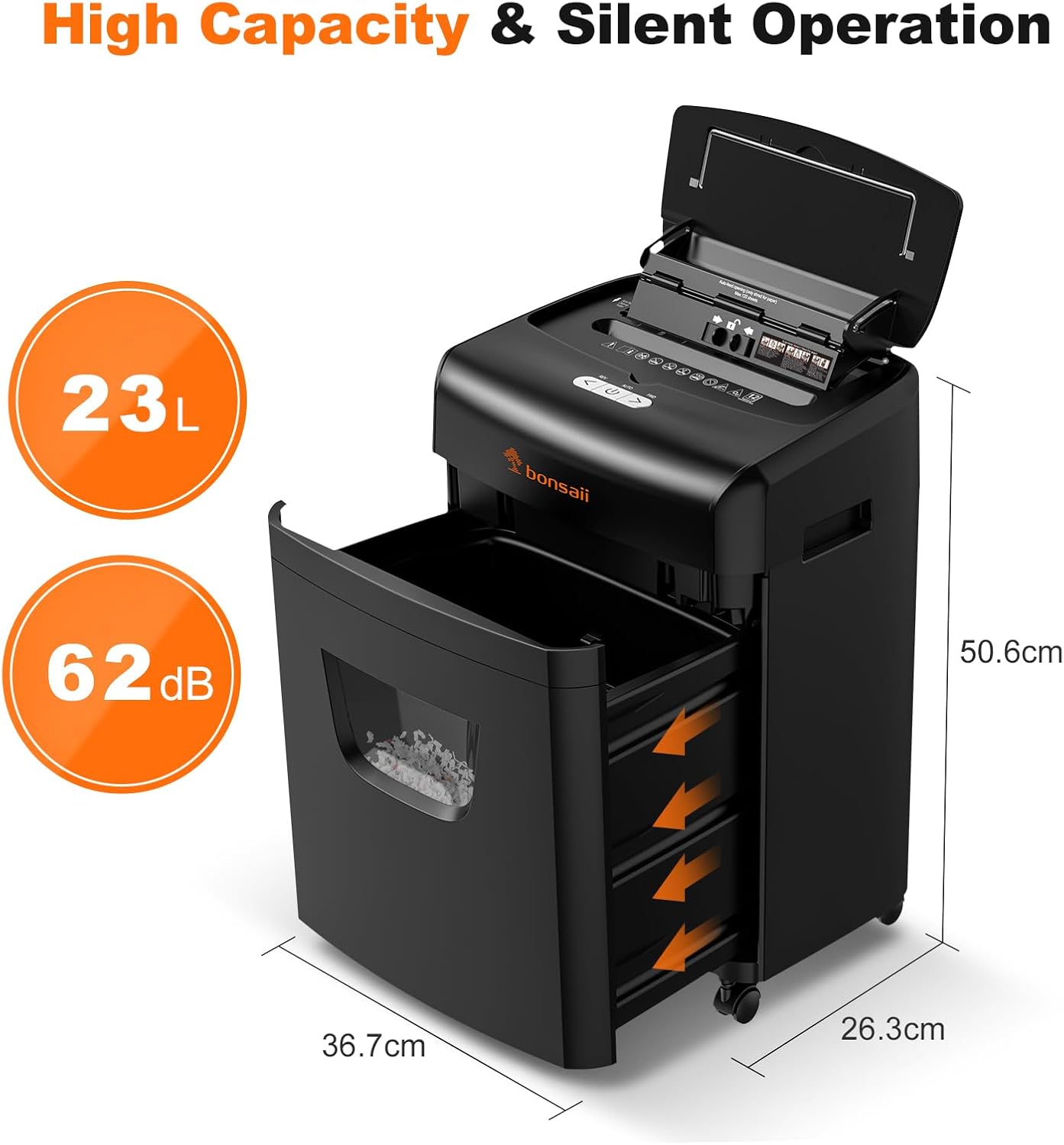 Bonsaii Papierversnipperaar - Autofeed - 120 vellen, P-4 microcut, 23L, stil 62 dB