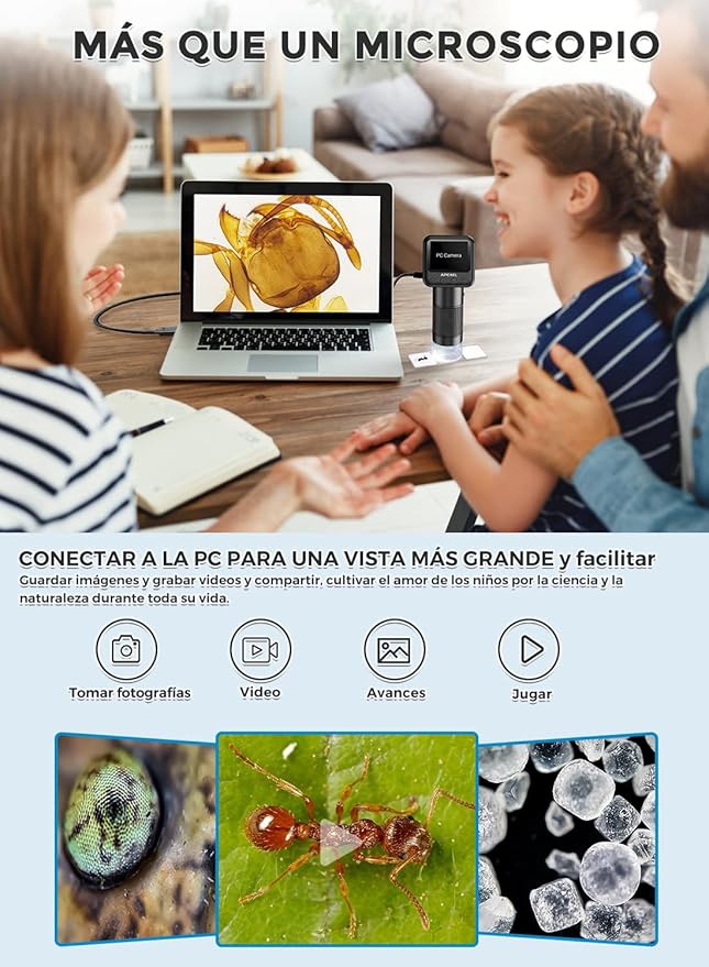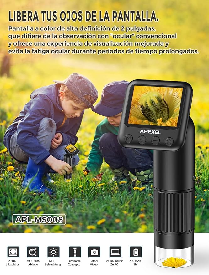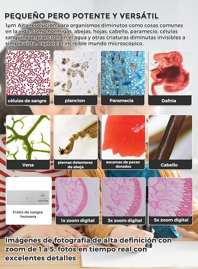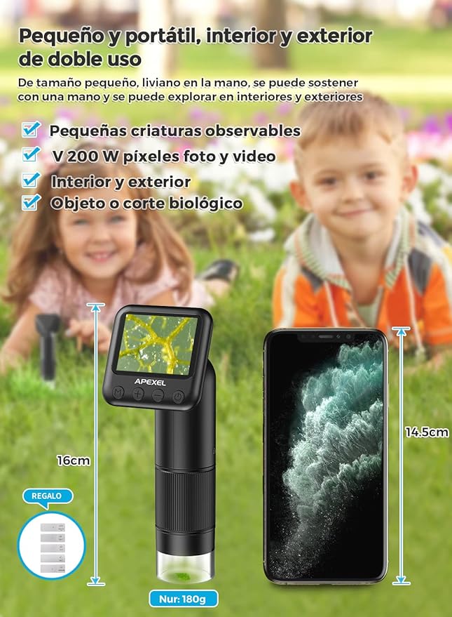 Ontdek de verborgen wereld met deze digitale zakmicroscoop, speciaal ontworpen voor nieuwsgierige kinderen én volwassenen. Met een gewicht van slechts 140 gram en een compact formaat neem je hem overal mee naartoe. Perfect voor op reis of een wandeling in de natuur. Leer meer over planten, insecten, mineralen of gewoon de kleine details van alledaagse voorwerpen.