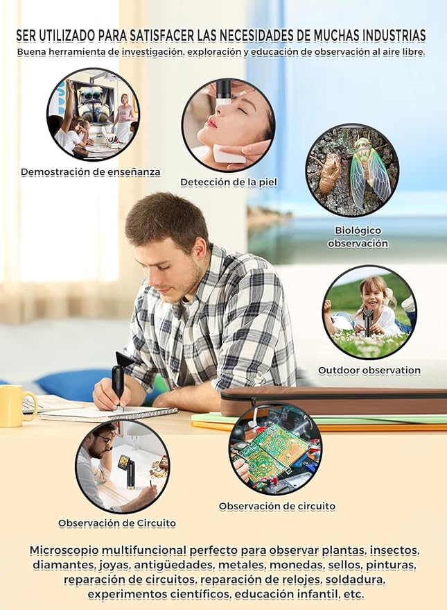 De microscoop is veelzijdig in gebruik: van het onderzoeken van insecten, planten en stenen tot educatief gebruik op school of thuis. Ook geschikt voor hobby’s zoals munten of sieraden verzamelen, en zelfs handig voor technische toepassingen zoals het bekijken van printplaten of horloges.