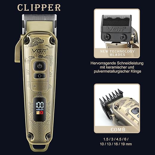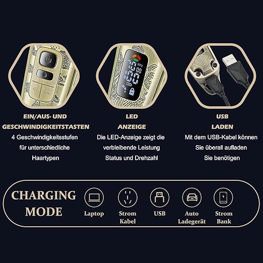 ✔ Inclusief accessoires: 12 opzetkammen, kam, schoonmaakborstel, olie en 2 USB-kabels