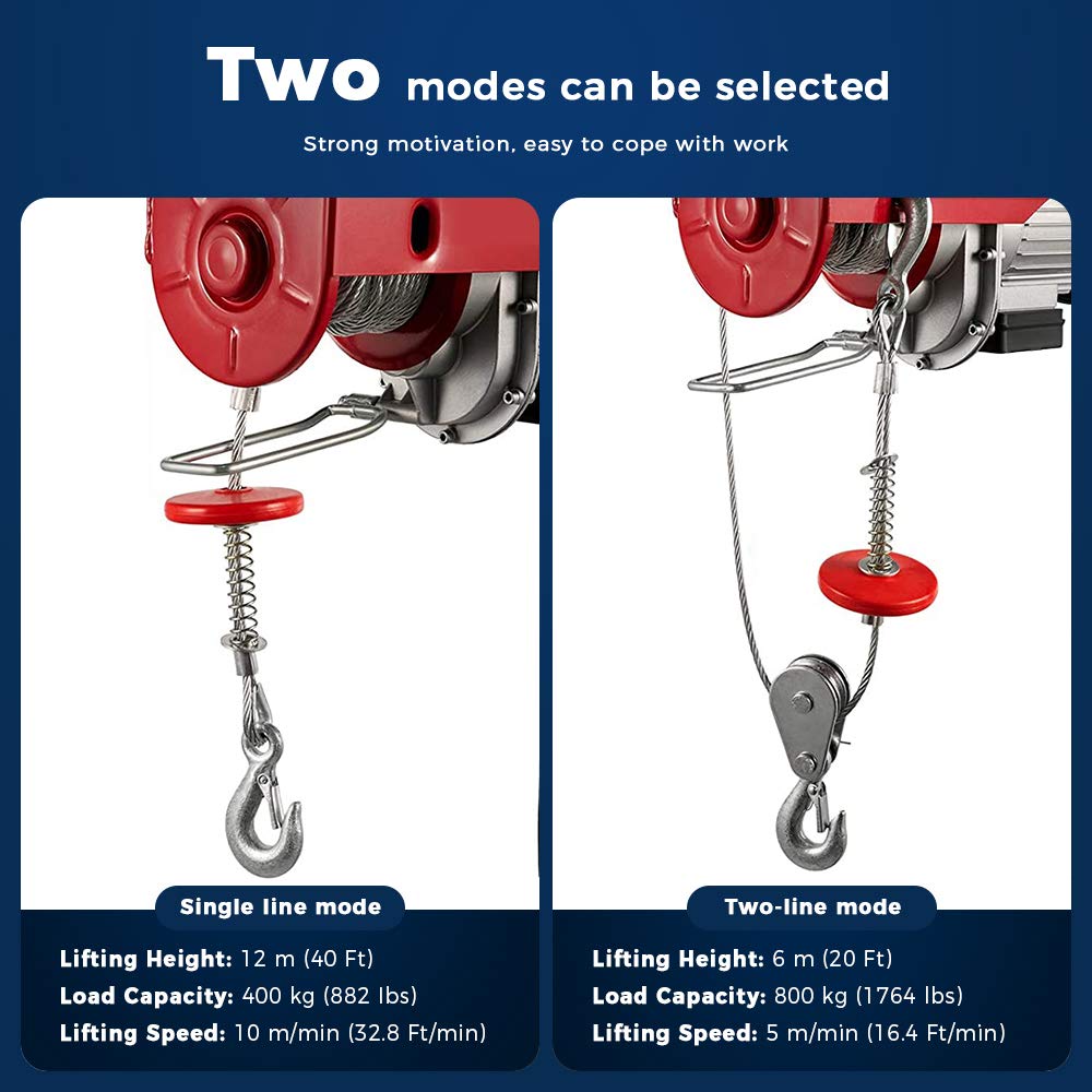 De PA800 is een krachtige elektrische kabellier die zware tilklussen snel, nauwkeurig en veilig uitvoert. De 1450W motor en sterke staalkabel maken het mogelijk om tot 400 kg te heffen in een enkele lijn en tot 800 kg met de meegeleverde katrol. De hefhoogte bedraagt 12 meter zonder katrol en 6 meter met katrol, met een hefsnelheid van respectievelijk 10 m/min en 5 m/min. Ideaal voor garages, werkplaatsen en situaties waarin zware onderdelen zoals motorblokken moeten worden verplaatst.