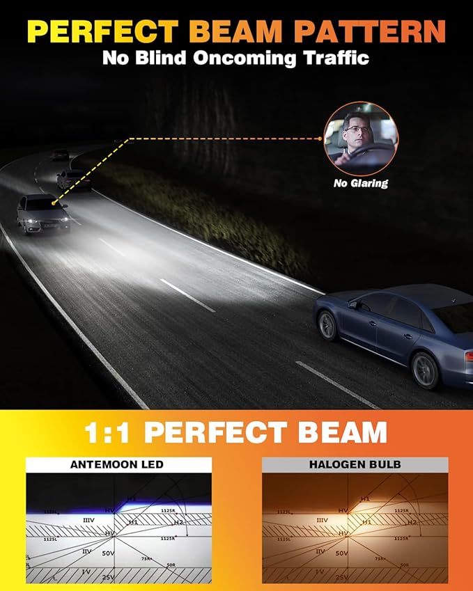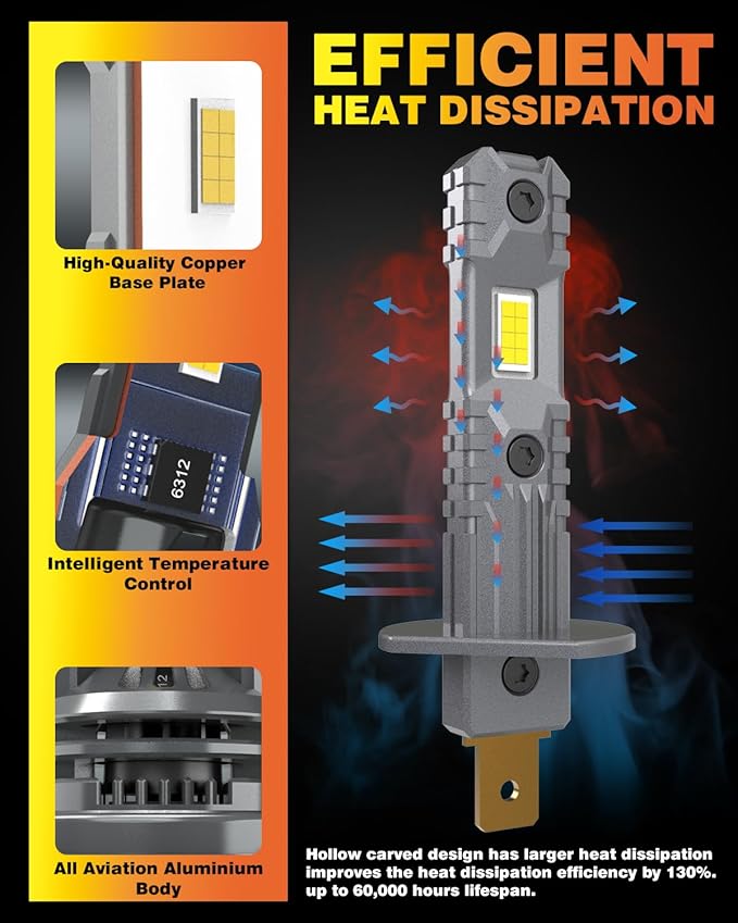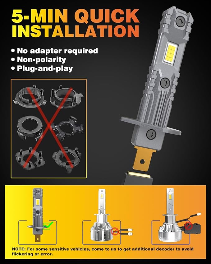 Verbeter je zicht op de weg met deze krachtige H1 LED koplampen. Met een lichtopbrengst van 20000 lumen per set en een kleurtemperatuur van 6500K koel wit, zijn ze tot 600% helderder dan standaard halogeenlampen. Het slimme ontwerp zorgt voor een perfecte lichtbundel zonder verblinding, wat zorgt voor meer veiligheid tijdens het rijden in het donker.