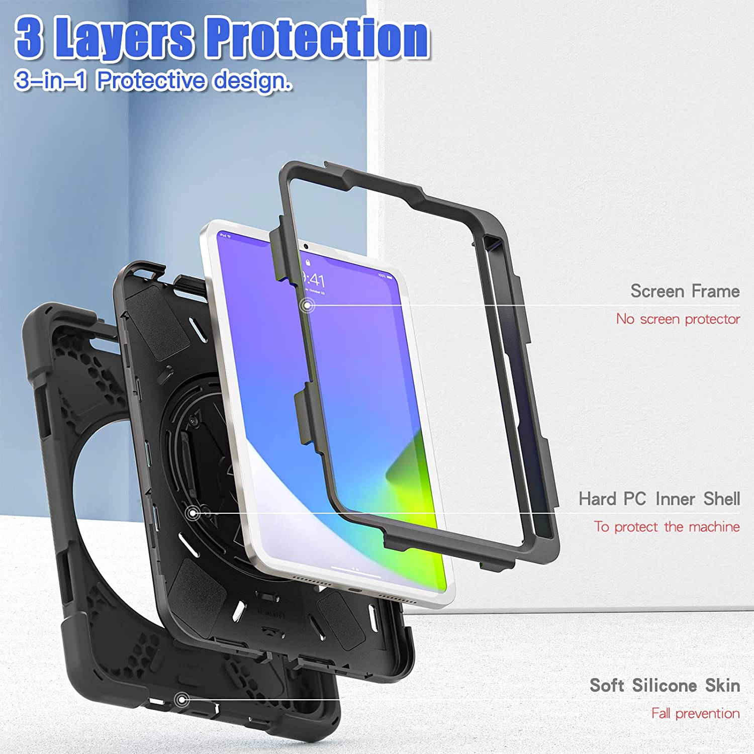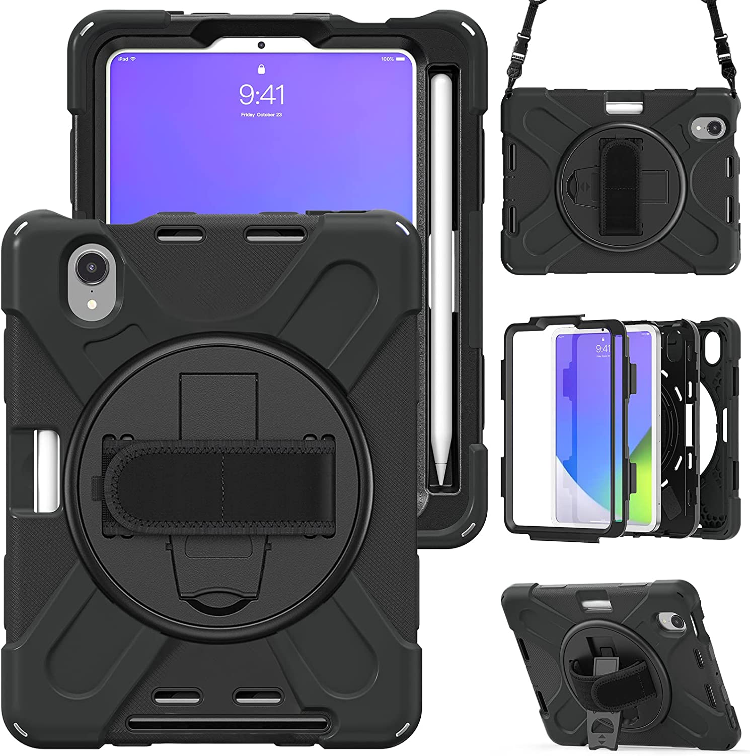 Beschermende hoes voor iPad Mini 6 (2021), 8,3 inch, schokbestendig, met 360° draaibare standaard en polsband. Voordelen en Specificaties: Compatibiliteit:... Lees meer