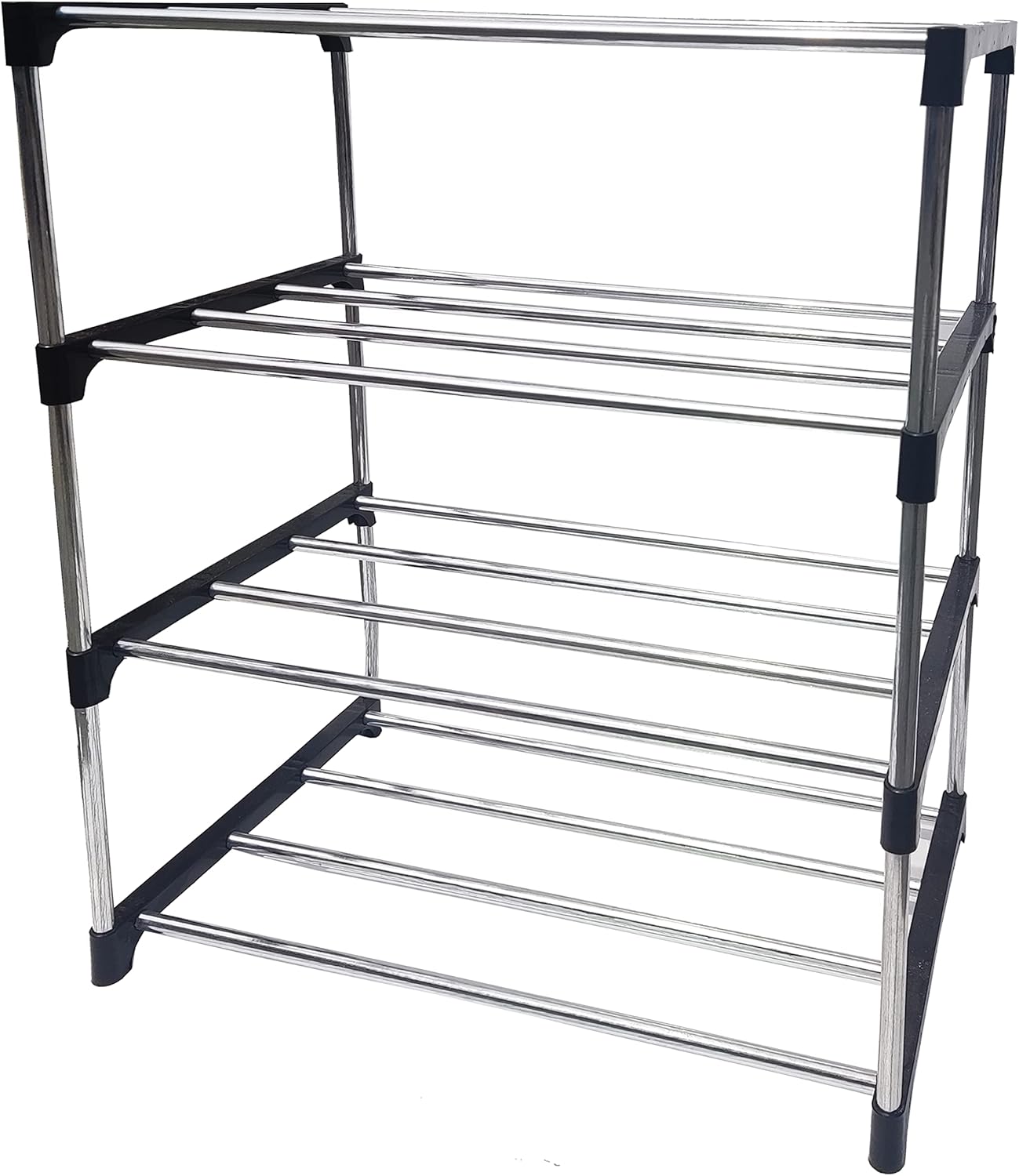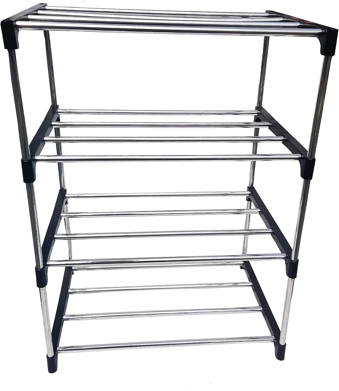 Schoenenrek 4-Laags Zwart/Zilver – Modulair - Gereedschapsvrij – 43cm – Stevig