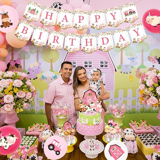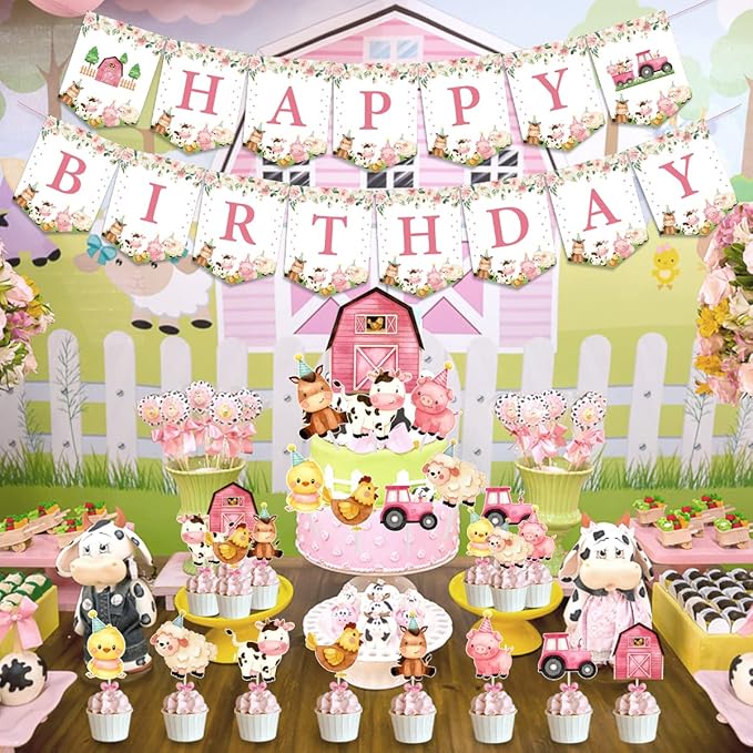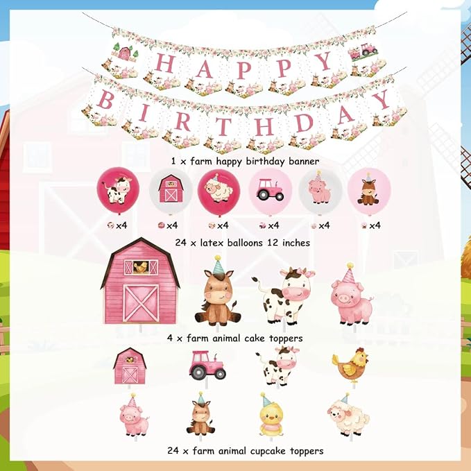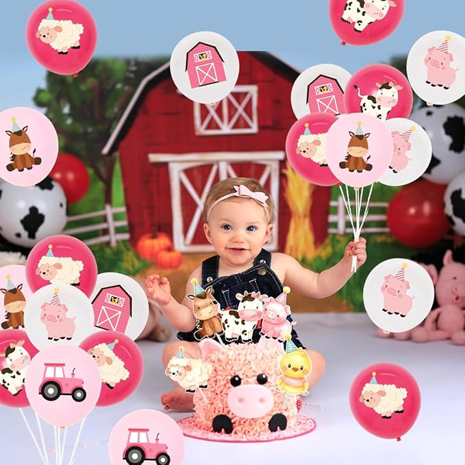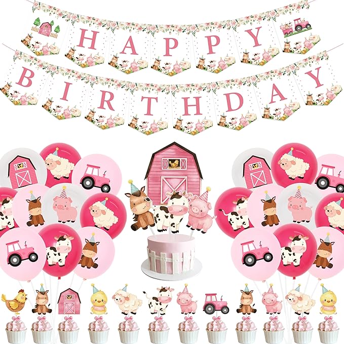 Verjaardagsdecoratie Set - Boerderij Thema - Ballonnen Vlaggen Taart en meer - Meisjesfeest