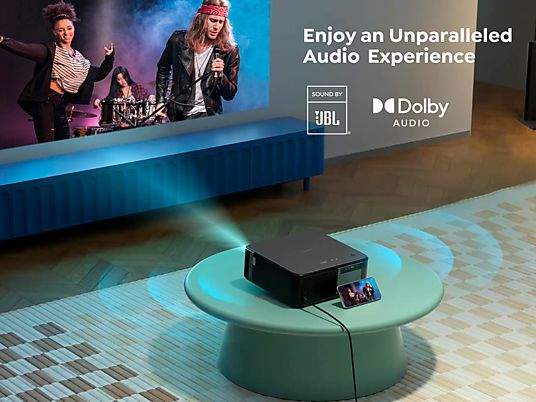 Maar ook bij een projector gaat het niet alleen om het beeld – ook hier is het geluid net zo belangrijk! De K2s is daarom uitgerust met 2 krachtige JBL-speakers van 10 watt, die beide Dolby Audio ondersteunen.